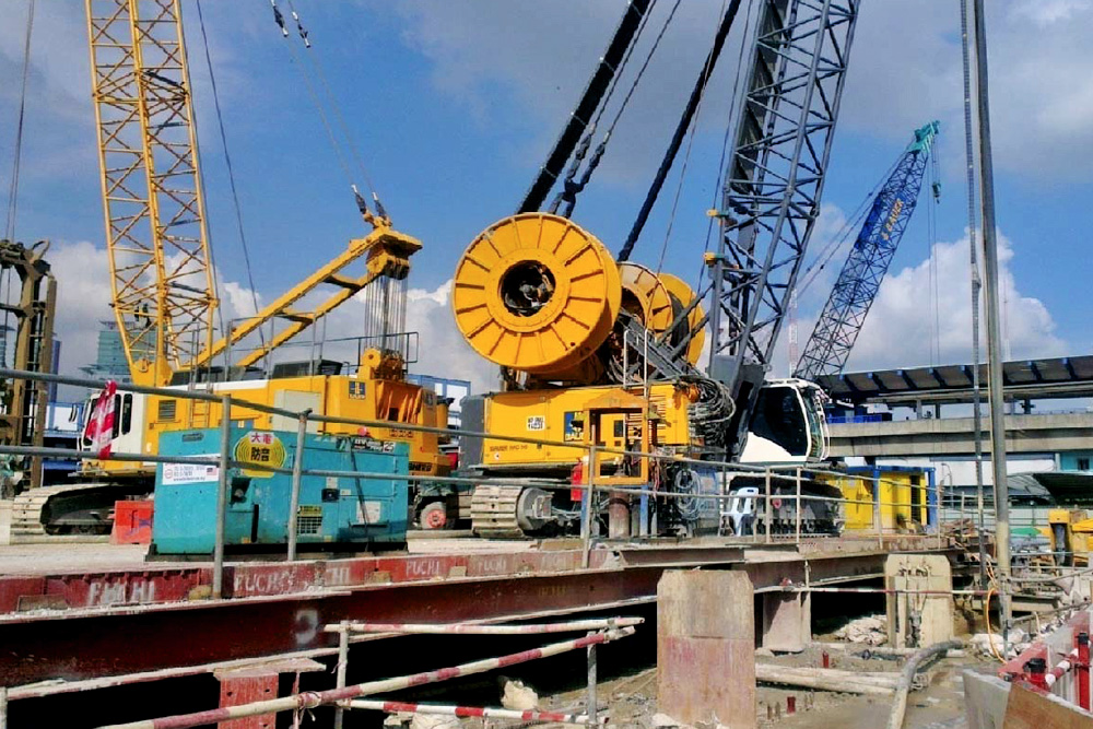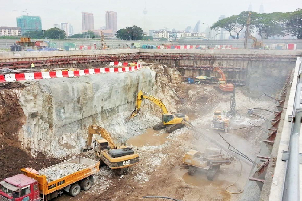 Ground Anchor Waler and Plunged In Column at KVMRT Maluri Station Box