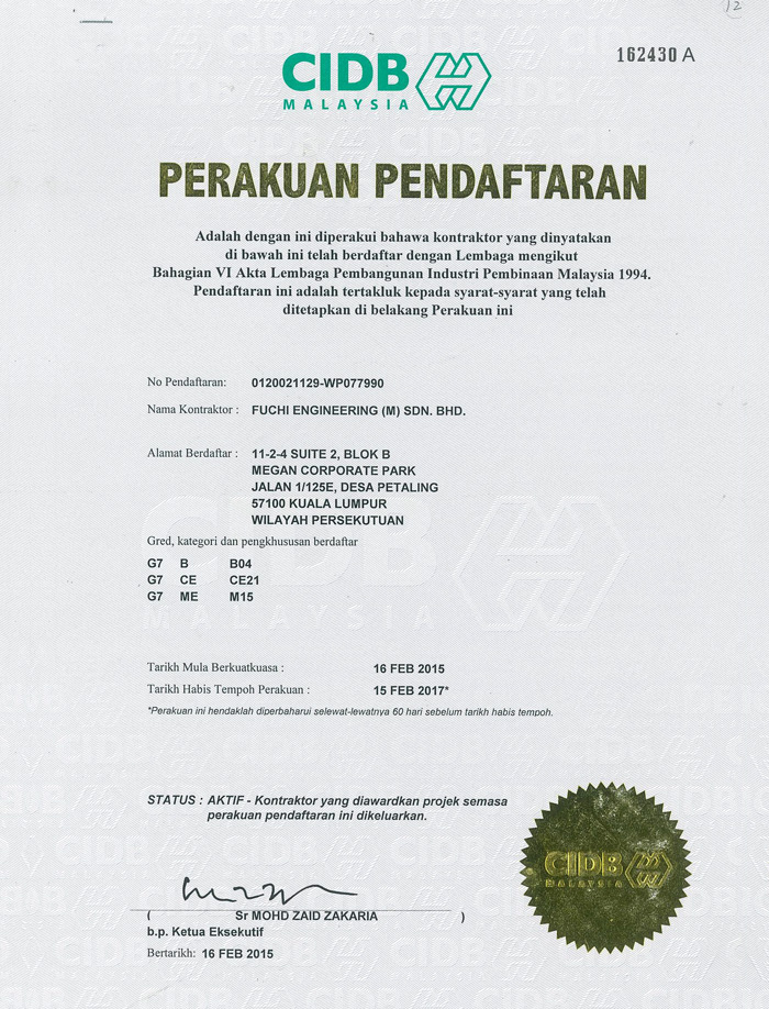 Fuchi Malaysia is a leading and outstanding temporary works contractor that provides a wide range of services in civil engineering works for deep excavation, foundation engineering and ground improvement projects. The Company provides Design, supply, fabrication, installation and removals of sheetpile, soldier pile, pre-boring, strutting, sheet pile, soldier pile, decking work and access platform works. It is also a specialist temporary earth retaining wall contractor capable of contracting projects from soldier pile, sheetpile and earth retaining system and internal support system such as ground anchor and strutting system.